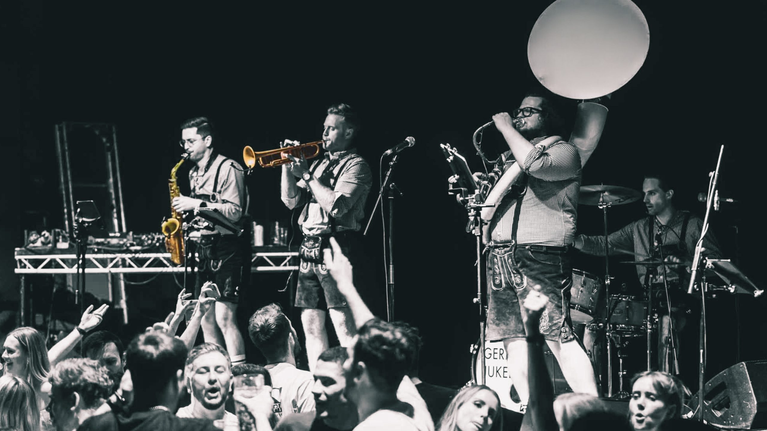 An oompah band playing at Boxhall during Oktoberfest in Liverpool Street