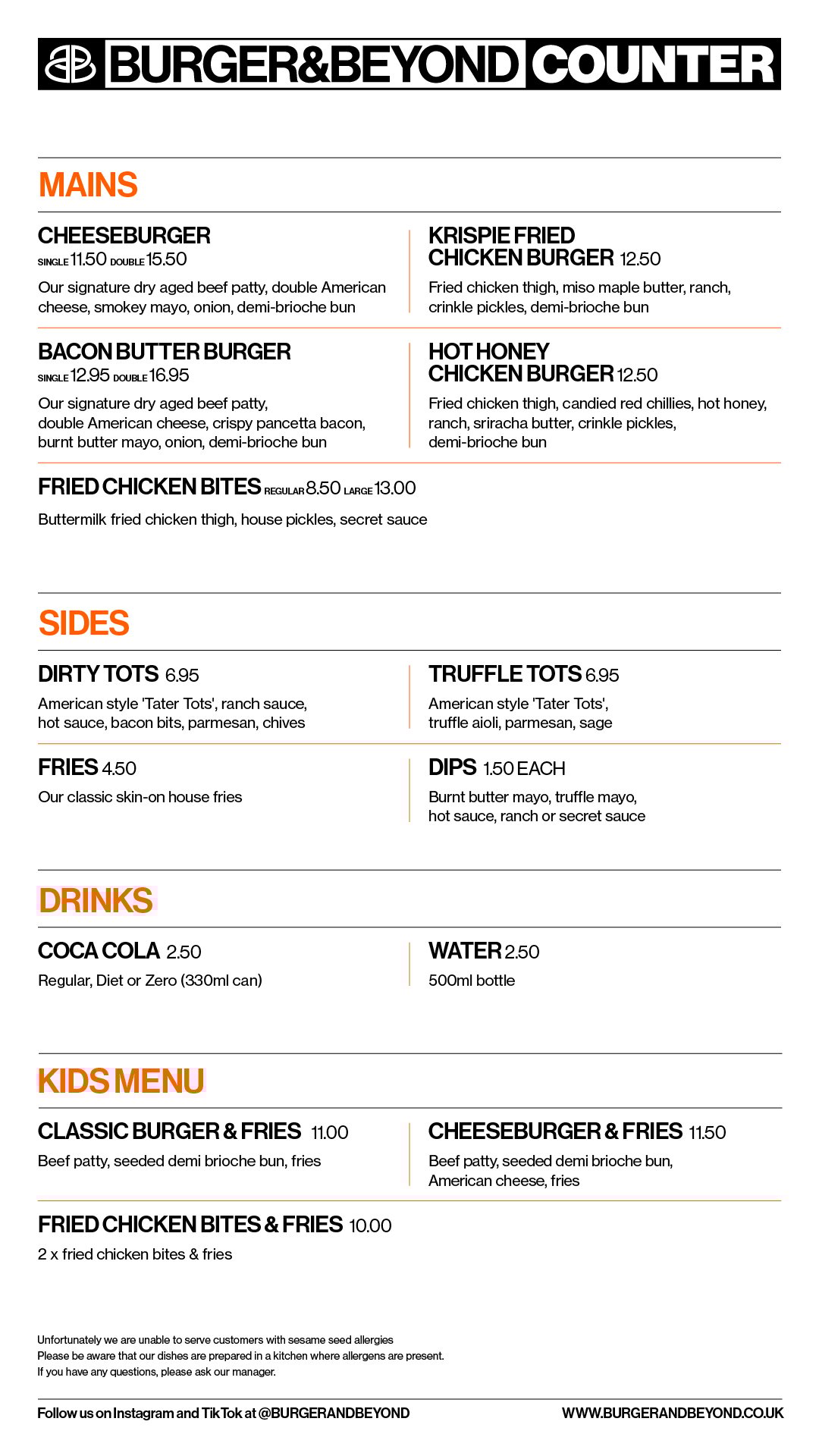 Note: All chicken products at Burger & Beyond are Halal.