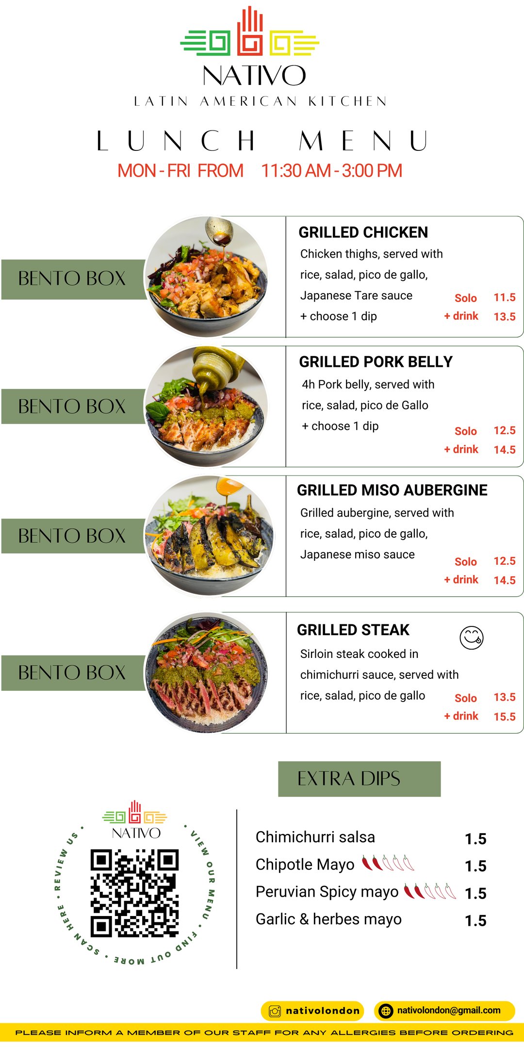 You’ll find signature Japanese-style Chicken Yakitori glazed in tare sauce but served alongside Peruvian spicy mayo, and Argentinian chorizo paired with sirloin steak and fresh chimichurri. For those seeking a specialised midday meal, their Bento Boxes offer a balanced mix of grilled meats, rice, and ponzu salad—a perfect reflection of Nativo’s cross-cultural craft.